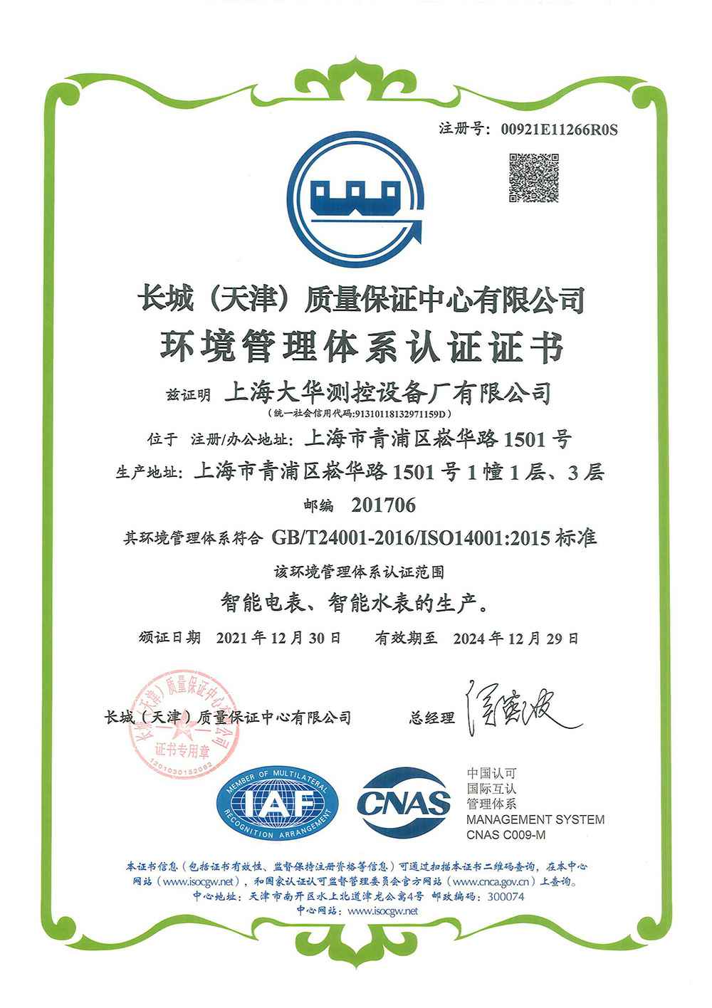 2020年 UCCS测量管理体系认证证书;